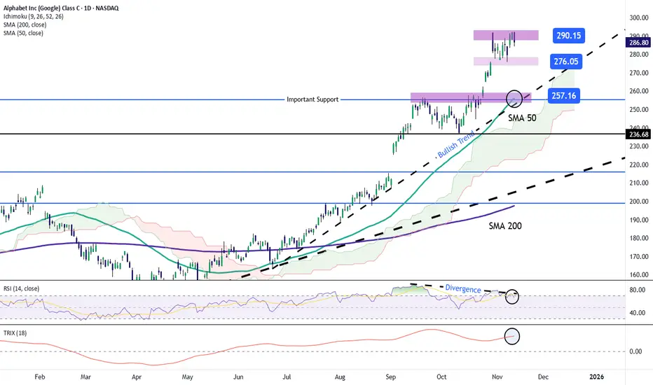- 290 USD – Major Resistance: This level corresponds to the stock’s all-time highs and represents the most important bullish barrier to monitor. A breakout above this area could trigger a more aggressive short-term uptrend, potentially pushing the stock toward the psychological 300-dollar level, provided buying pressure remains dominant.