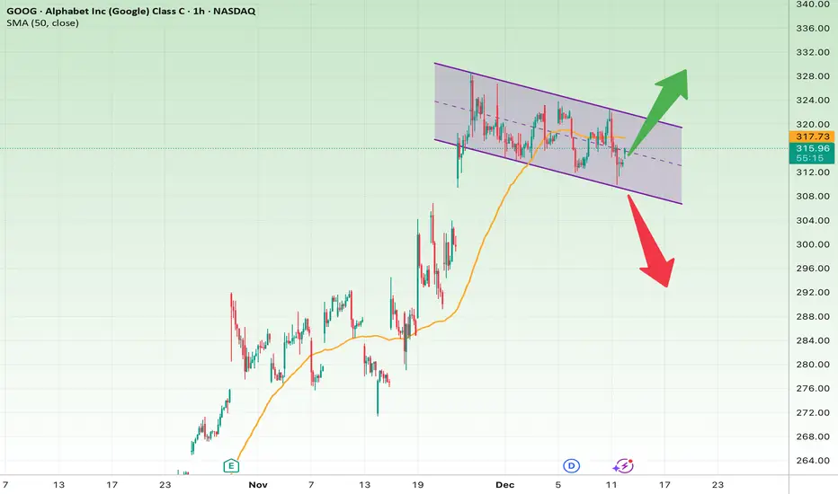 If the price breaks above the channel resistance (around 319–320) and closes a confirming candle above it: