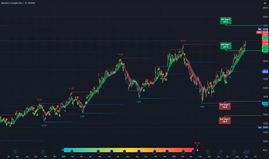 Breakout Attempt: You’re sitting near recent highs around 212.90, which shows buyers are in control. If it clears that resistance cleanly, Bull Target 1 (201.75) is already hit, and Target 2 (230.12) is in play.