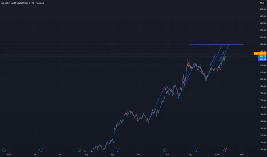 Given recent price action we should see 350 on google in the coming week with the assumption that we will not get any major new cycle shocks.