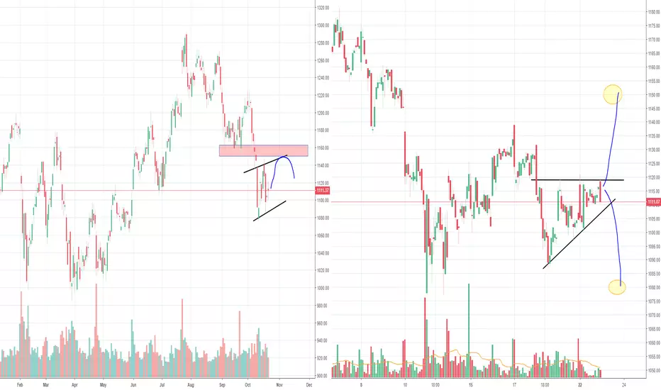 Looks like a very clear triangle, like every triangle it can always break out both ways. When looking at the bigger picture i would say we will break upwards to retest that red resistance zone, which would form a bigger bear flag if the gets rejected there. I will wait for a clear breakout before taking a position on this one.