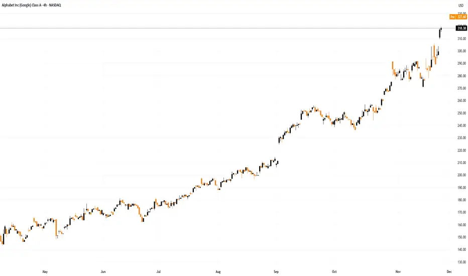 Charts show that Alphabet (GOOGL) shares have reached a record high, closing around $318. In doing so: