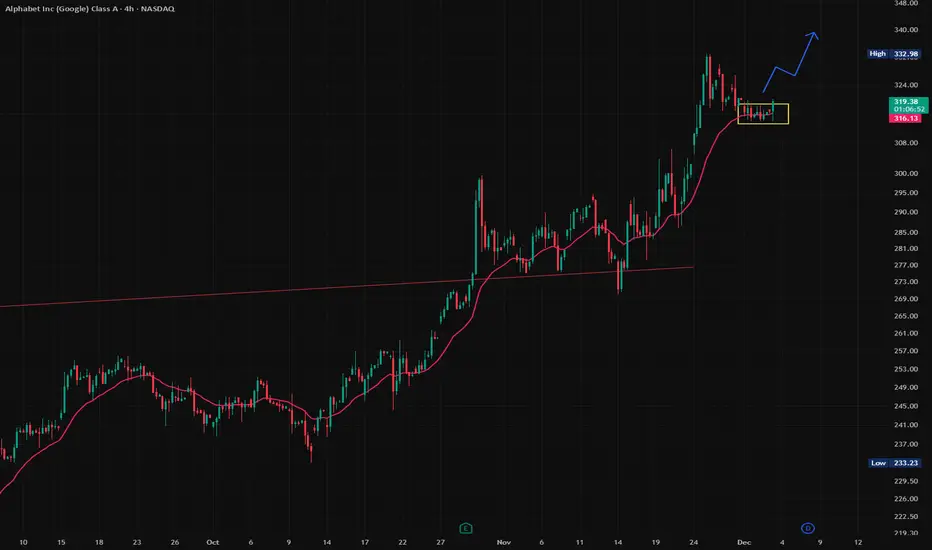 GOOGL earlier today. I am bearish longer term on the chart, but this looks like it is going to make a new high first.