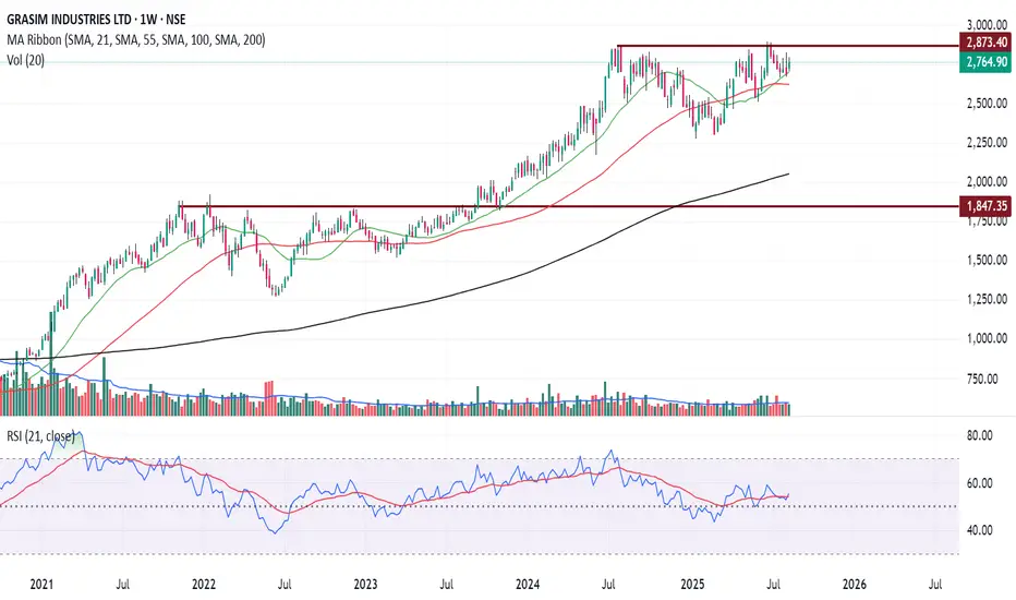 Good bullish setup shaping up in Grasim. A new consolidation above 2875-2900, will help further with upmove. Trading close to ATH, above MA's, decent RSI, volumes are consistent. I will consider it more as a positional candidate. A well known name from Birla Group. Had a decent Q1 and with India govt focus on Infra expansion, it should benefit.