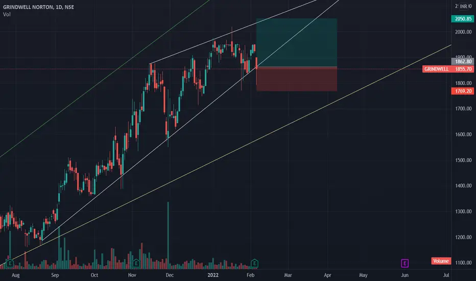 SL is placed below support zone & the lower trendline. The target is placed near resistance.