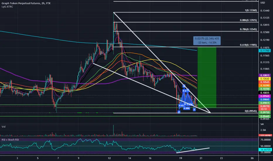 We have a promising looking Falling Wedge Visible on the Hourlies with a small Deep Gartley at the Bottom. My target here will be the .618 retrace and the SL will be below the previous major low to our left.