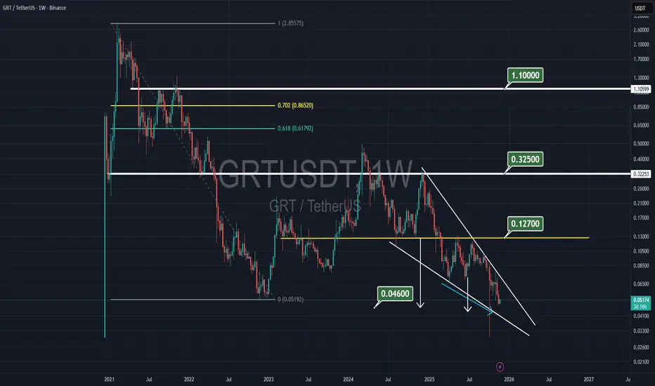 GRT very likely find a bottom in this area and start to rally very soon after breaking the long-term falling wedge to about $0.33