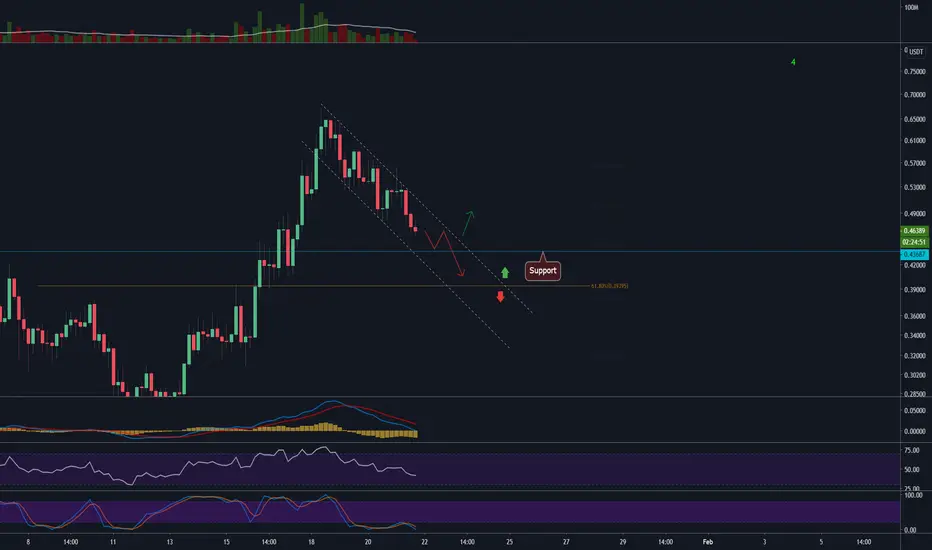 GRT has corrected in the past few days and now we are exploring for support. We have a good chance to find some support level around $0.40 but for that to be confirmed we will need to leave this descending channel.