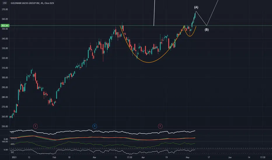 As you can see we have a C&H breakout with an implied price target of $384 on this pattern. May see a re-test of the neckline and if so, this will be your best entry on confirmation that this becomes support. GL!