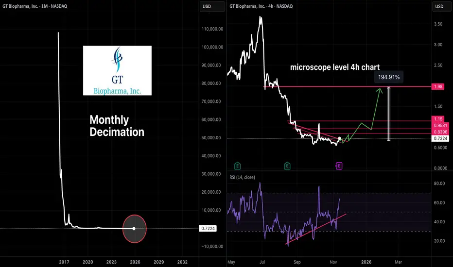 The monthly chart is disastrous, but if you drill all the way down to the 4H chart, it looks to be coiling up.