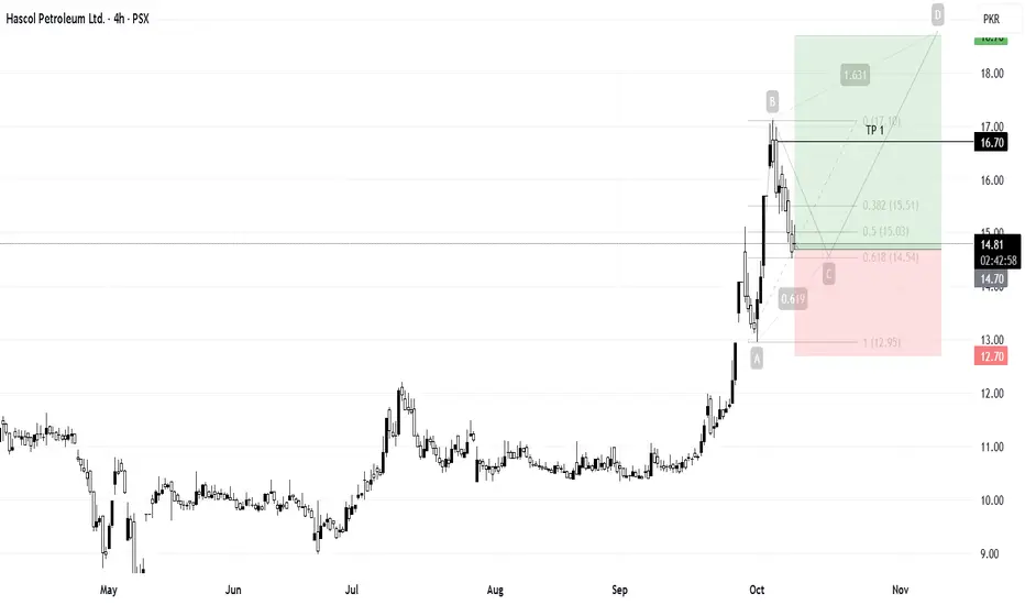 HASCOL has recently shown bullish momentum. After making a high, the price has retraced to the 0.618 Fibonacci golden ratio, presenting a potential buy opportunity at the current market price. A stop loss can be placed below the last low, with take profit targets around the last local high and the ABCD projection.
