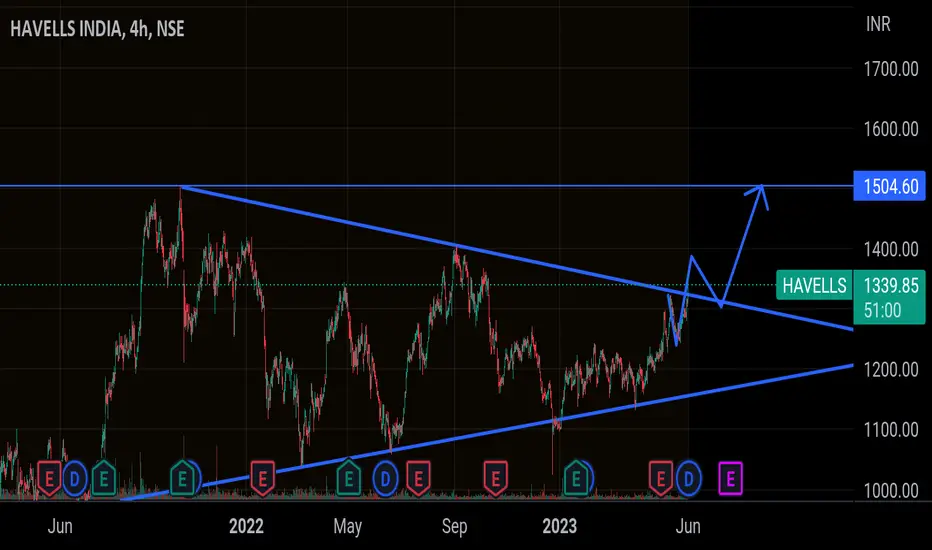 Make symmetrical triangle chart pattern in 4 hour time fram , take break out with High volume , MACD and RSI saw fair value , also take support of 50 EMA so first Target will be 1504.05 and Stop loss will be 1268.75