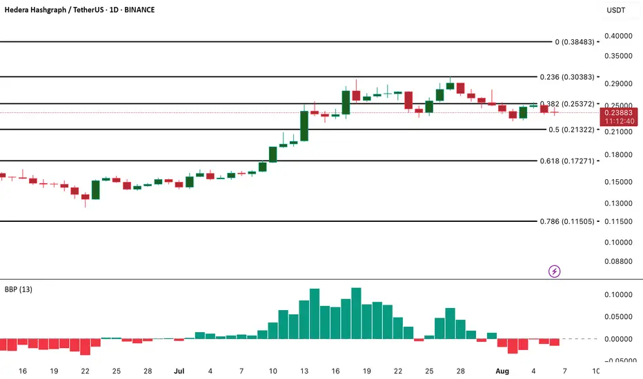 The current sequence of red histogram bars underscores sustained selling pressure and fading bullish momentum, suggesting that sellers have maintained the upper hand in HBAR’s market over the past week.