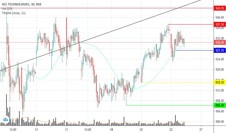 As per the trend of higher TF HCLTECH looking good below 527 as per 30M chart for short with Sl above 537. Both entry and exit closing basis.