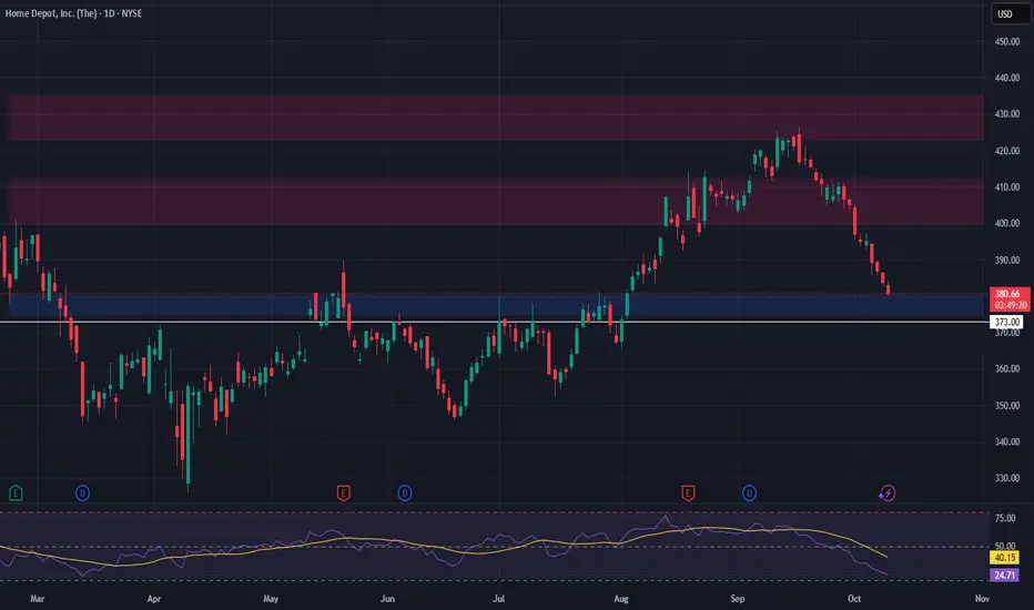 HD has retraced into a crucial support zone between $375 – $380, offering a potential long entry opportunity. This level aligns with prior consolidation and buying interest, and while broader US indices hint at a possible correction, HD is holding this support relatively well.