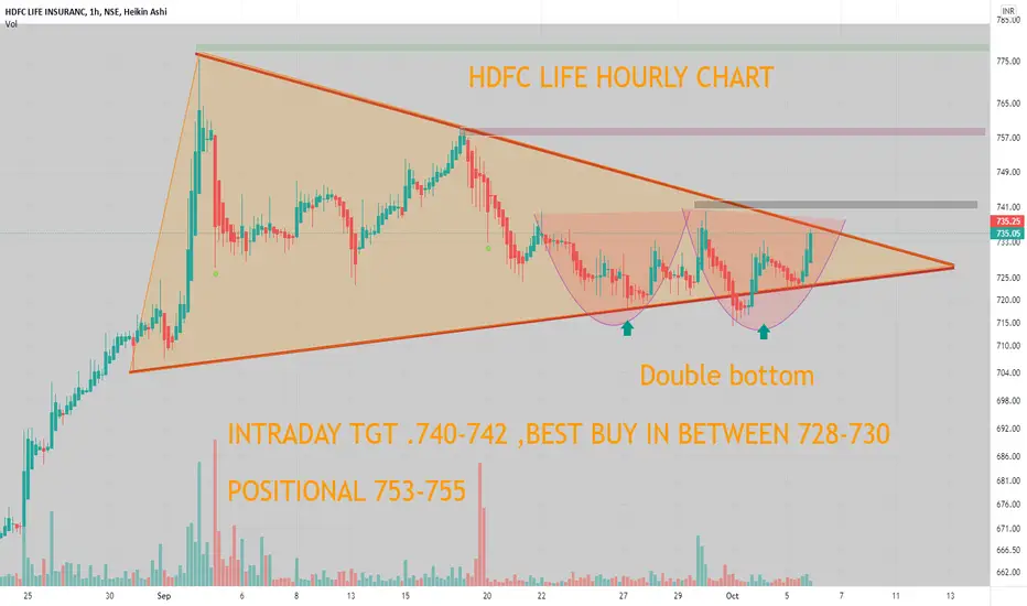 Triangular pattern along with double bottom , intraday tgt 740-742 . positional 753-755