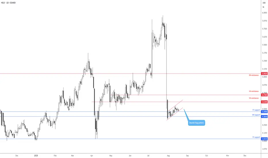 As a result, price could continue to grind higher within the confines of the bearish flag until reaching resistance at US$4.7185-US$4.6105 before sellers attempt to push things lower.