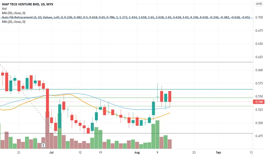 Potential for a long trade when MA20 crosses up with MA50. Keep monitoring and target price 0.705