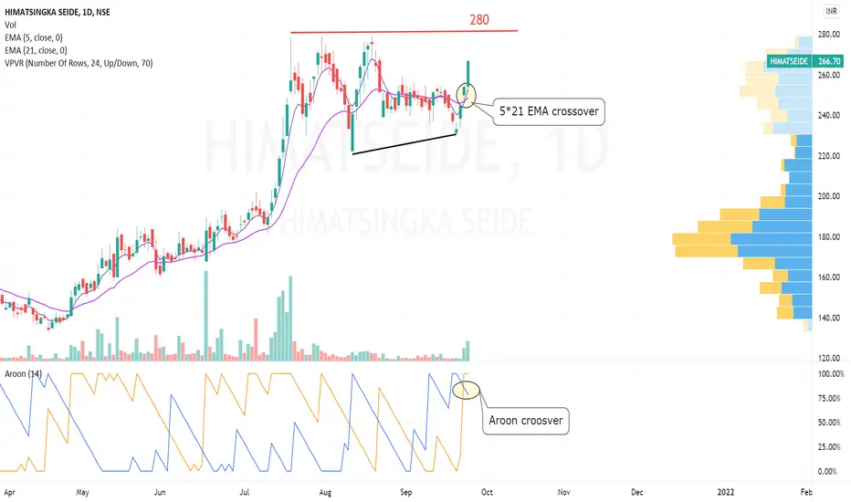 The set up should easily flow into new highs. Safe players should consider an entry only post 280 daily close.
