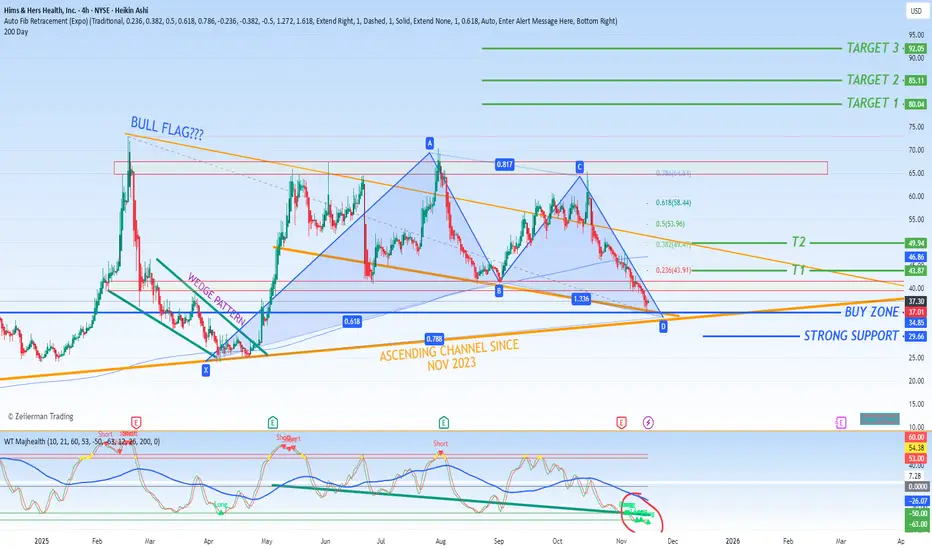 HIMS is aligning to form a compelling bullish narrative, suggesting the prolonged downtrend may be concluding and a significant new upward cycle could be beginning. The convergence of a key reversal level, a classic continuation pattern, and strong momentum indicators warrants close attention.