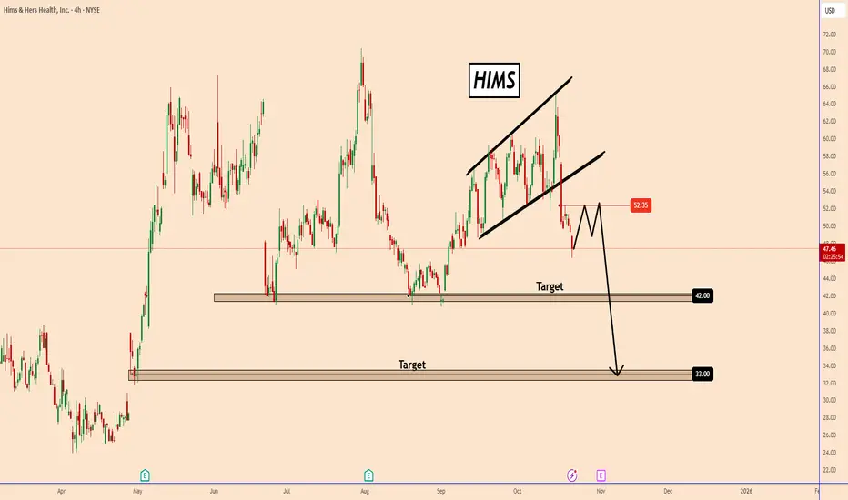 HIMS: Showing Signs of Exhaustion: Downside Targets at 42 and 33