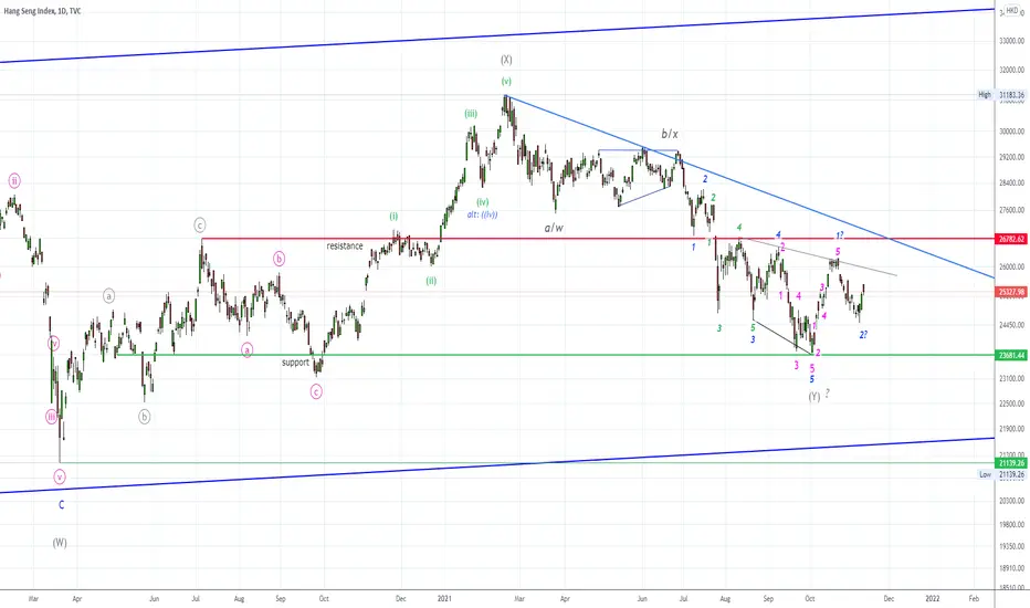 But if HS is able to rise, in an impulsive move, above 26234 it has the chance to extend to 28892 at minimum. At this level, it could touch the range of the wave b/x high at 29394!
