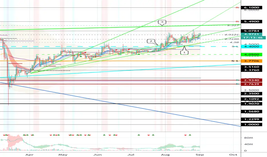 If it rises above the uptrend line (3), I think that minimal trading is necessary to preserve the profit and loss.