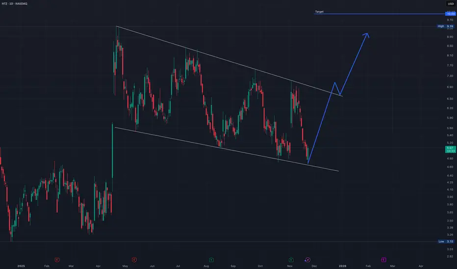 If HTZ maintains support at this lower trendline and begins to push higher, the next key level to monitor is the upper wedge resistance. A confirmed breakout above that level may trigger a shift in trend, opening room for a measured move toward the $10 target area, which aligns with previous highs and the projected wedge breakout objective.