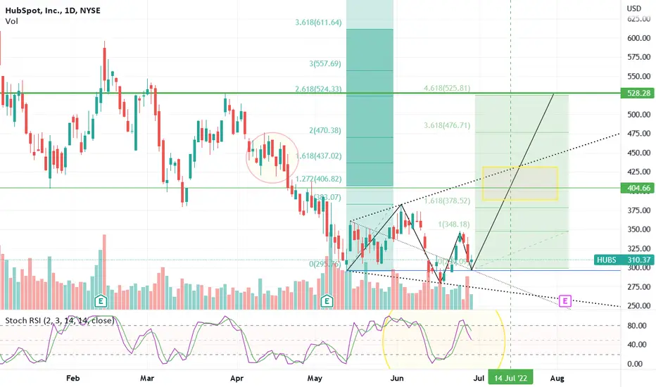 HUBS has my favorite setup. Initial target 404 by Jul 15.