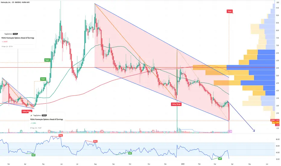 Now analyzing the options chain and the chart patterns of HUMA Humacyte prior to the earnings report this week,