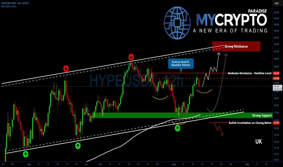 💎HYPE continues to stand out as one of the market’s strongest altcoins, maintaining its climb inside a well-defined ascending channel. On top of that, an inverse head and shoulders pattern is taking shape, a classic bullish signal hinting at further strength ahead.
