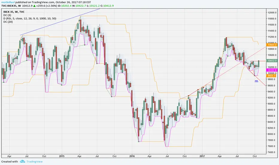 We've reached the 7 week's top again and due to the weak signs of all major stock exchanges I suppose that the IBEX won't manage to overcome this this week. Political uncertainty will weigh additionally.