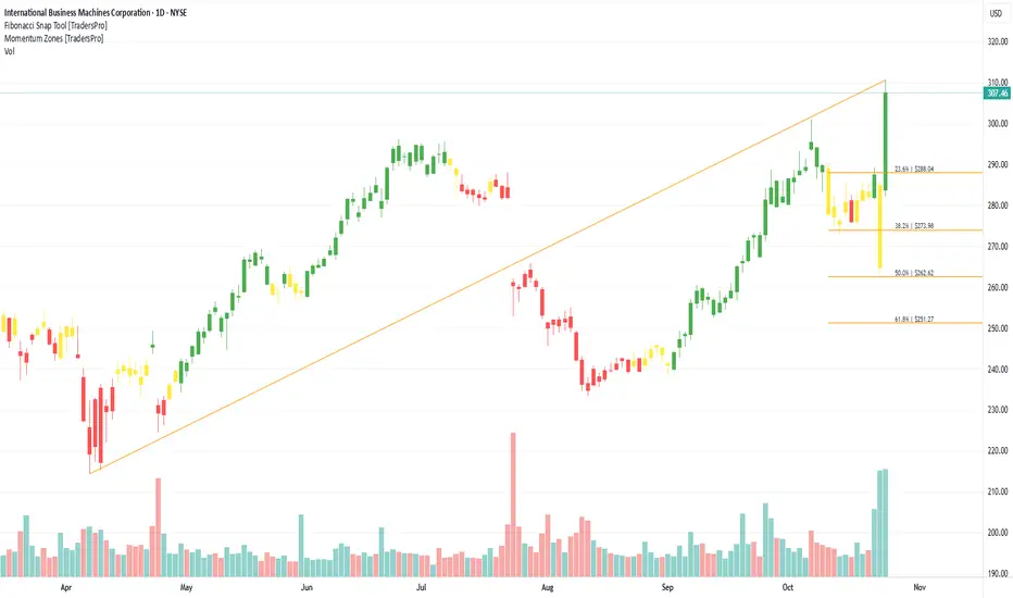 On the chart, a confirmation bar with rising volume highlights bullish momentum. The price has entered the momentum zone after moving above the .236 Fibonacci level. A trailing stop can be set just below this Fibonacci line using the Fibonacci snap tool, helping traders protect profits while leaving room for continued upside potential.