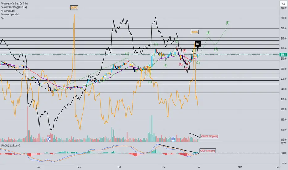 1). Wave 2 is likely over. 2). Buy take profit at 350 or so. 3). Please use tight stop losses and a very small % of your trading account, like 1%...Thank you!