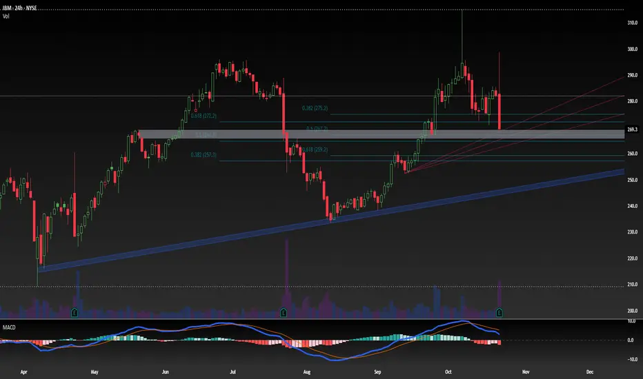 While IBM beat EPS and revenue estimates, the stock is selling off hard. News indicates investors are focused on decelerating growth in the key Red Hat (software) segment. This "sell the news" reaction is a classic confirmation of a distribution top.