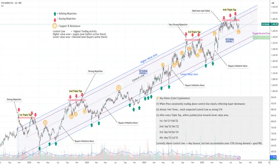 “ICICI Bank – Triple Tops Rejected, Demand Zone in Focus”