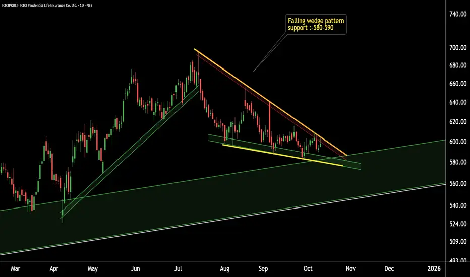 Currently, ICICIPRULI is holding strong support near the 580–590 zone based on pattern structure.