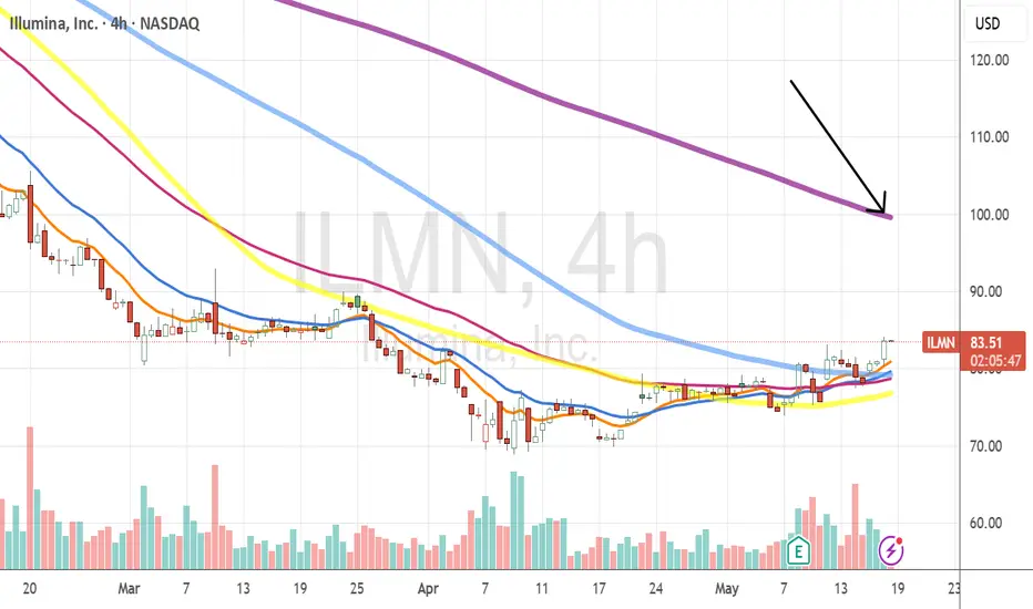 This is a 4 hour chart and the arrow is pointing at the 200MA on that 4 hour chart. This is a great breakout that should hit that 200MA in the coming days. You can either buy the shares or for small ccounts you can either sell puts 7 days out just below your entry and collect premium or buy a call and sell at target.