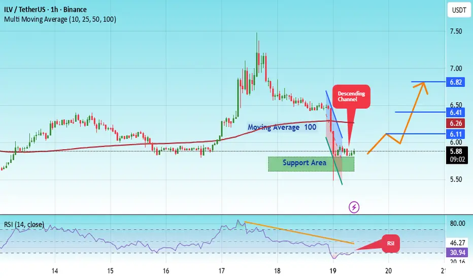 The price is moving within a descending channel on the hourly timeframe. It has reached the lower boundary and is heading towards a breakout, with a retest of the upper boundary expected.