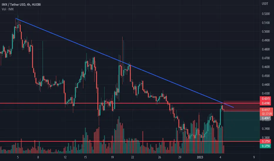 IMX bounced off the descending trendline. Asset bounced off the resistance level. Bearish movement to support level at 0.376 is possible.