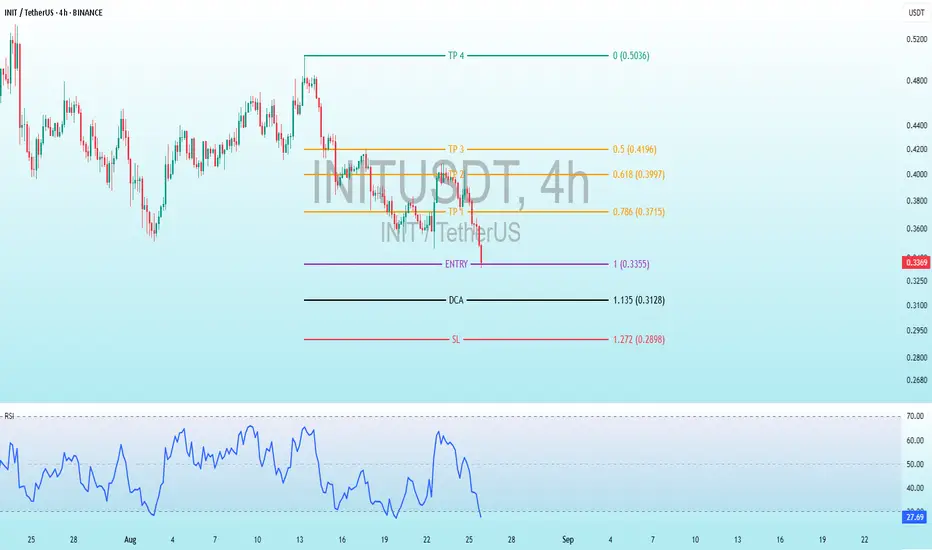 RSI (Relative Strength Index): The RSI at the bottom shows a decline from around 50 to below 30 (oversold territory) in the recent period. This suggests the price may be oversold and could see a reversal or consolidation soon.