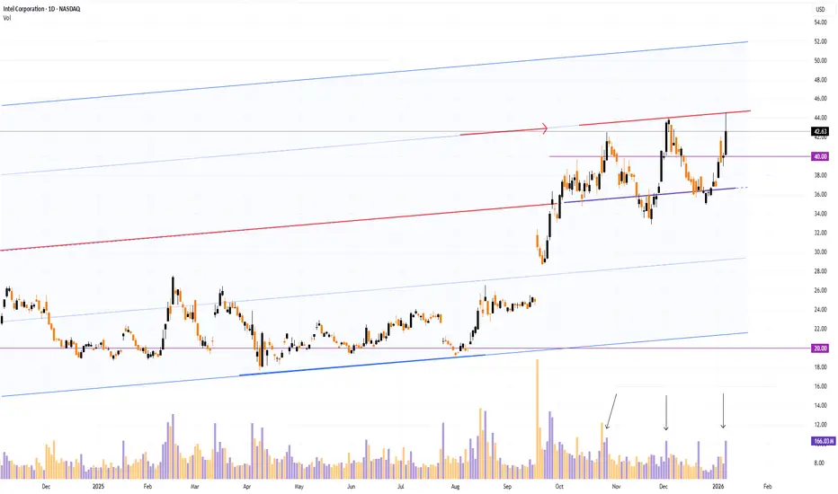 Intel (INTC) shares jumped above $44.30 yesterday, marking a 21-month high. The rally was driven by news from CES 2026, where the company unveiled its new Core Ultra Series 3 processors (codenamed Panther Lake). These are Intel’s first consumer chips manufactured using the advanced Intel 18A process technology.