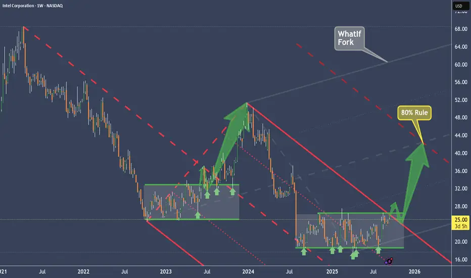 The last time INTC broke out of its sideways range, it re-tested support three times.