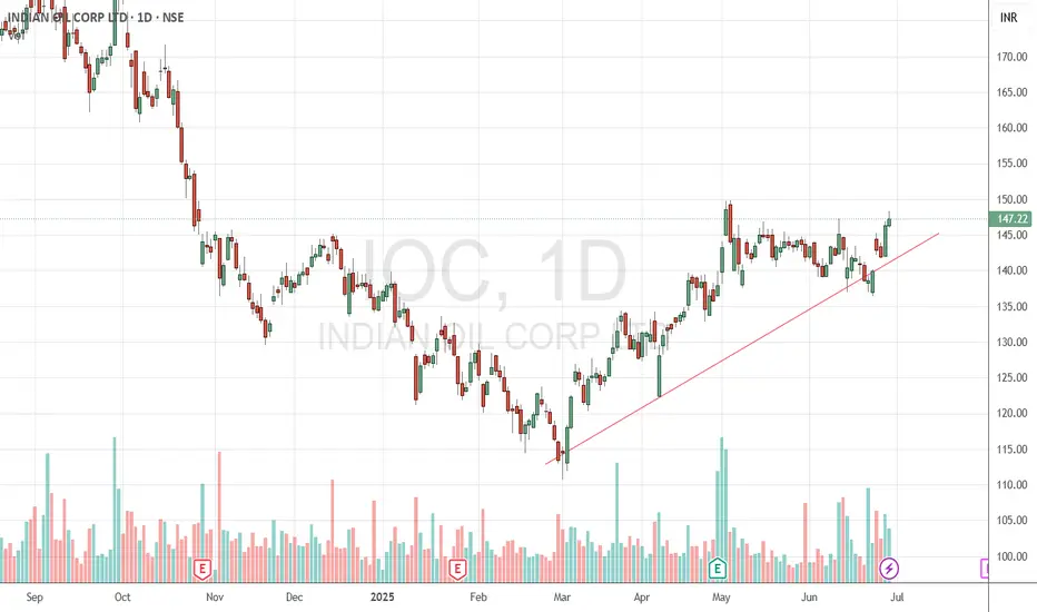 Indian Oil is taking support at the trend line. Buy CMP (148) with SL of 135 and target of 160-180.