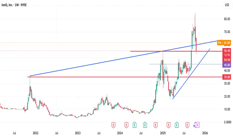 Based on my technical analysis (TA), if IonQ breaks below the $55 zone, the next potential downside target could be around the $45 level.