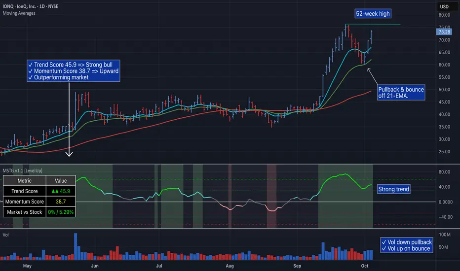 IonQ (IONQ) showed strong performance this week, hitting new highs and maintaining bullish technical ratings as sector momentum continued and news of strategic investments boosted sentiment.