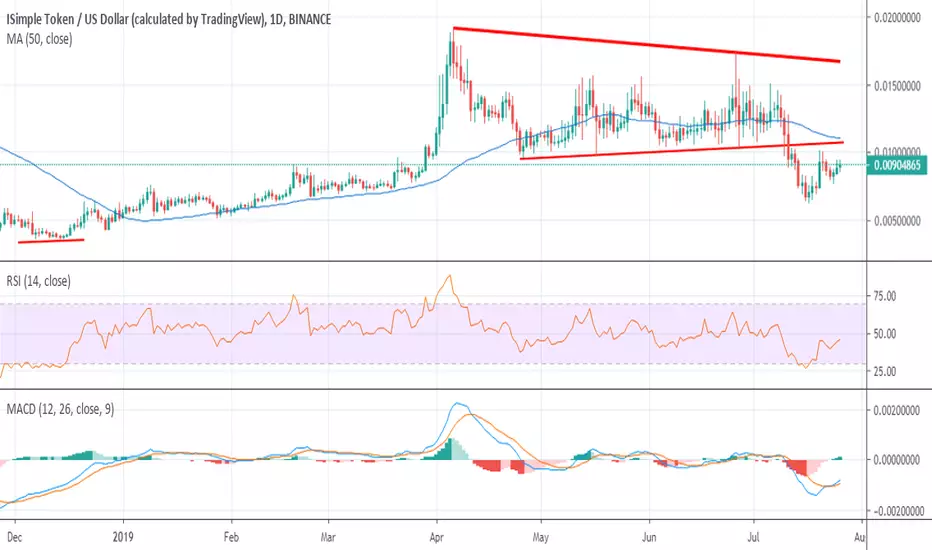The daily time frame clearly shows that unless buyers move price back inside the wedge pattern, the IOST / USD pair could still see significant downside ahead.