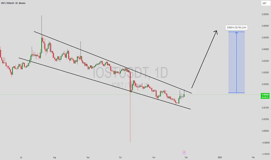 ORCAUSDT is forming a clear falling wedge pattern, a classic bullish reversal signal that often indicates an upcoming breakout. The price has been consolidating within a narrowing range, suggesting that selling pressure is weakening while buyers are beginning to regain control. With consistent volume confirming accumulation at lower levels, the setup hints at a potential bullish breakout soon. The projected move could lead to an impressive gain of around 90% to 100% once the price breaks above the wedge resistance.