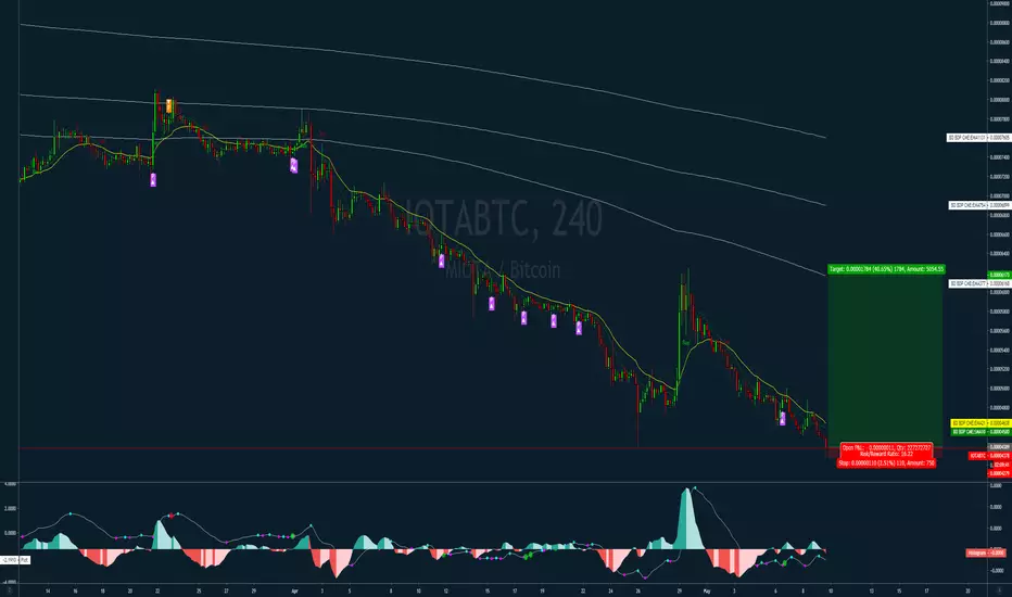 Putting this here mostly for tracking purposes. There's some bullish divergence forming but most indicators are still saying it's bearish. I'm buying some IOTA here at the current prices (4380) and stopping at the LOD which is about 4275. If this rebounds, it's good for about 40% ROE.