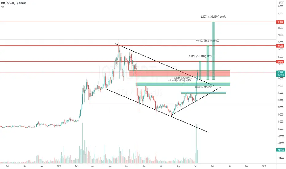 IOTAUSDT has broken the channel on daily time frame it is good buy around marked demand area with bottom level as stoploss on closing basis for the target given on the chart. Let's see